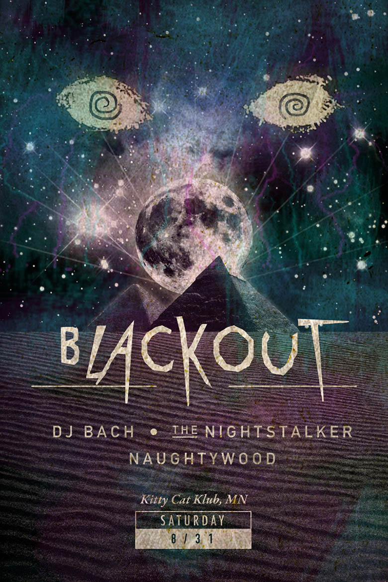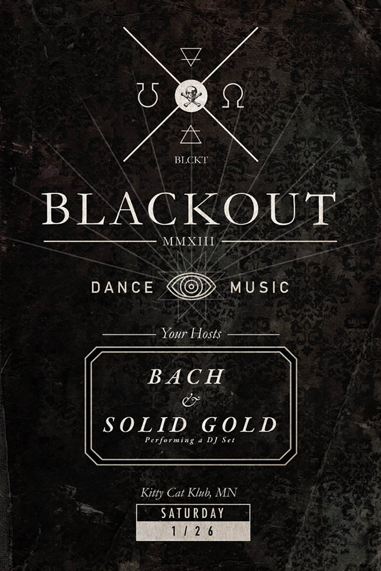 BLACKOUT was a monthly dance party that I produced with DJ Bach. Guests included acts such as Gigamesh, Solid Gold, Mark Mallman, Grant Cutler, Neuport, Espada, Naughtywood and more.