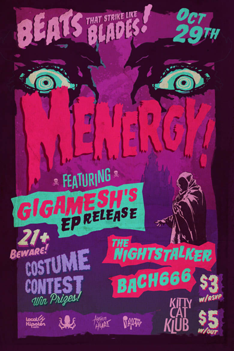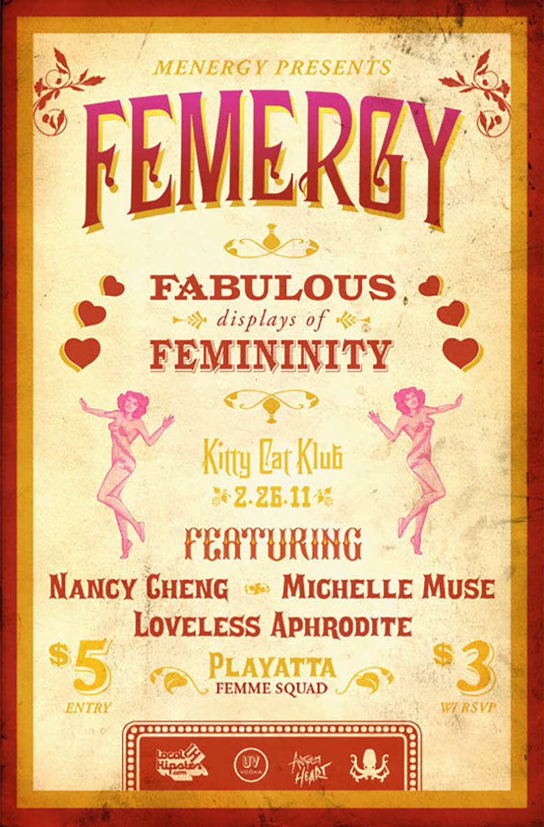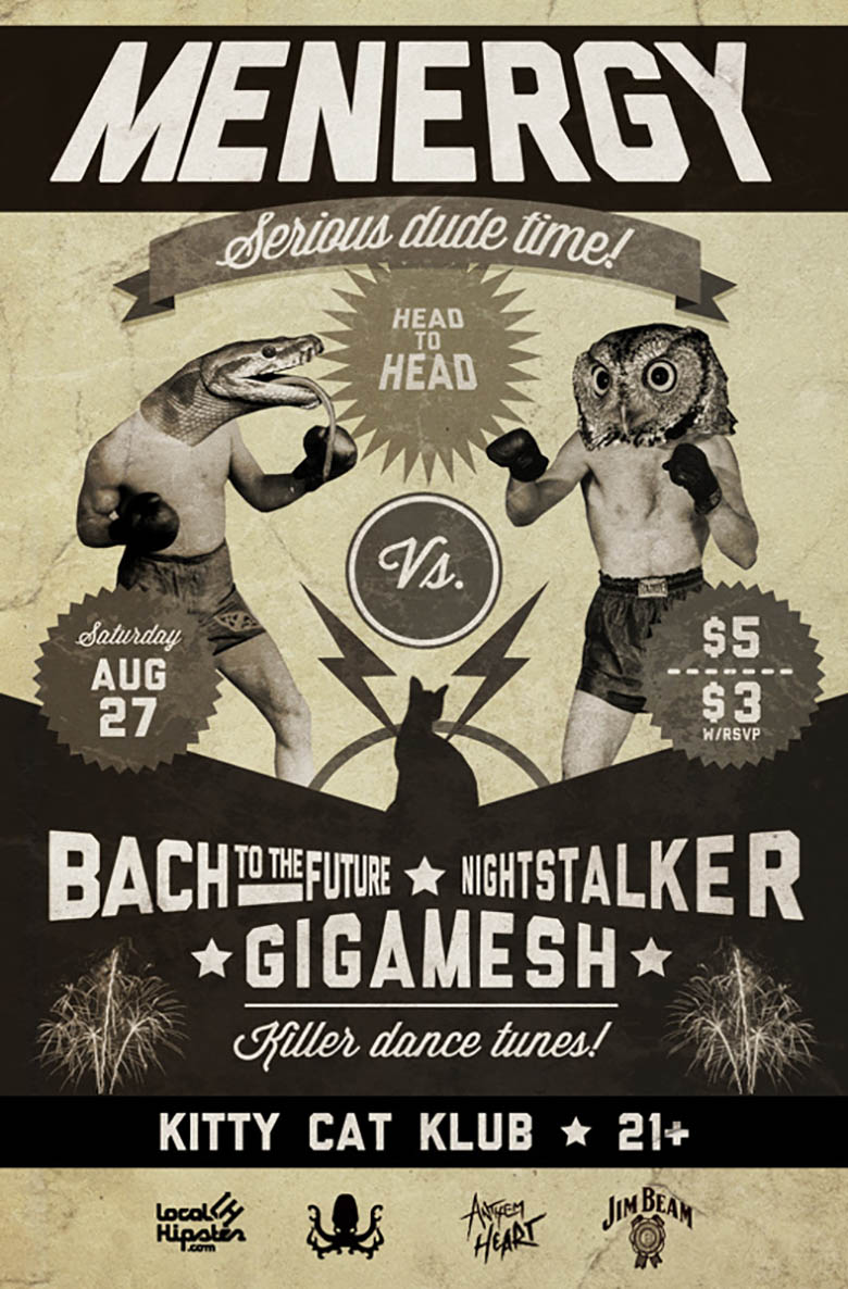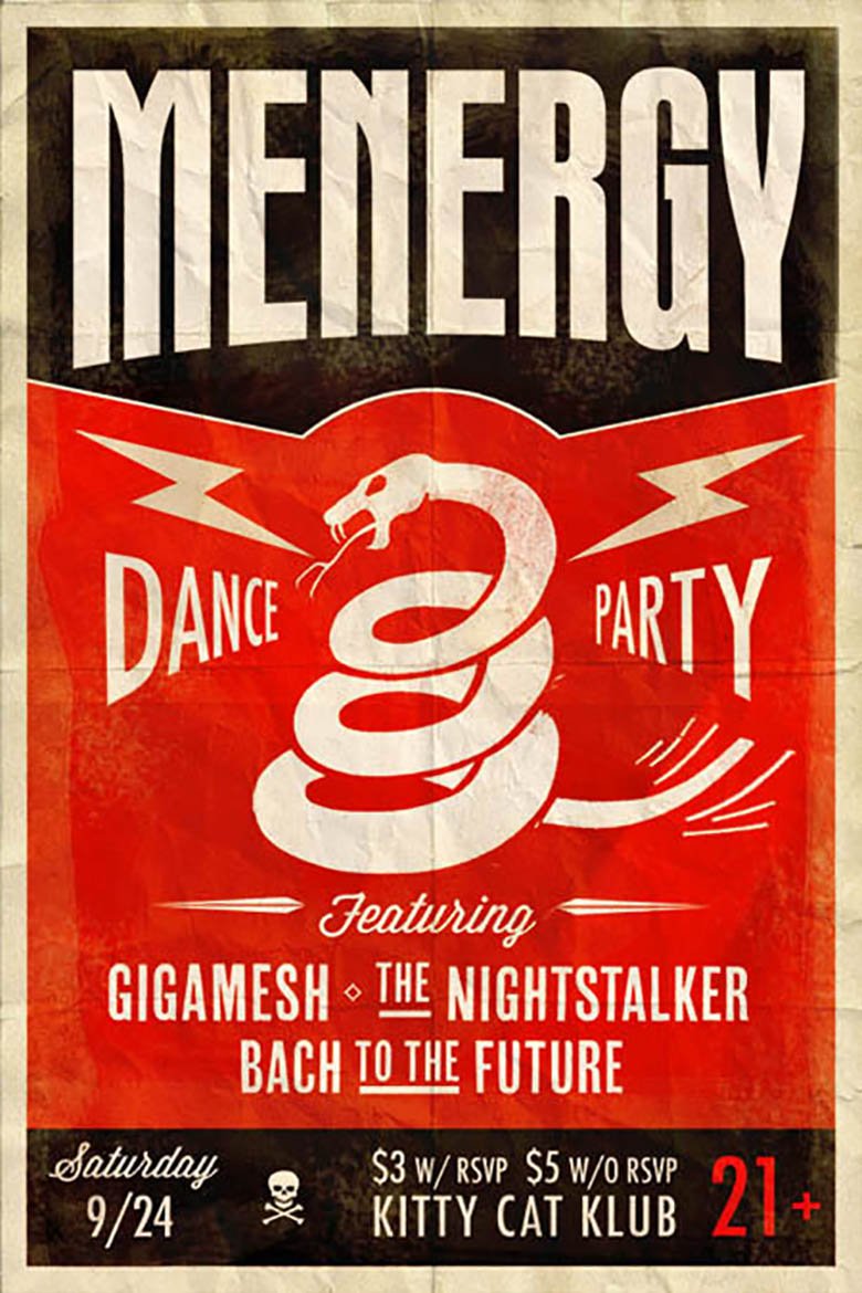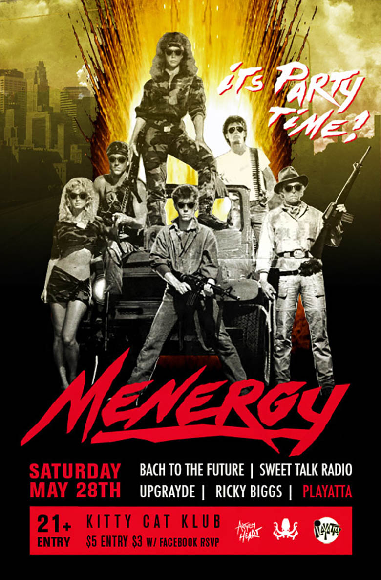 MENERGY was a dance party at the Kitty Cat Klub in Minneapolis. Here are some of the flyers I created for promotion.