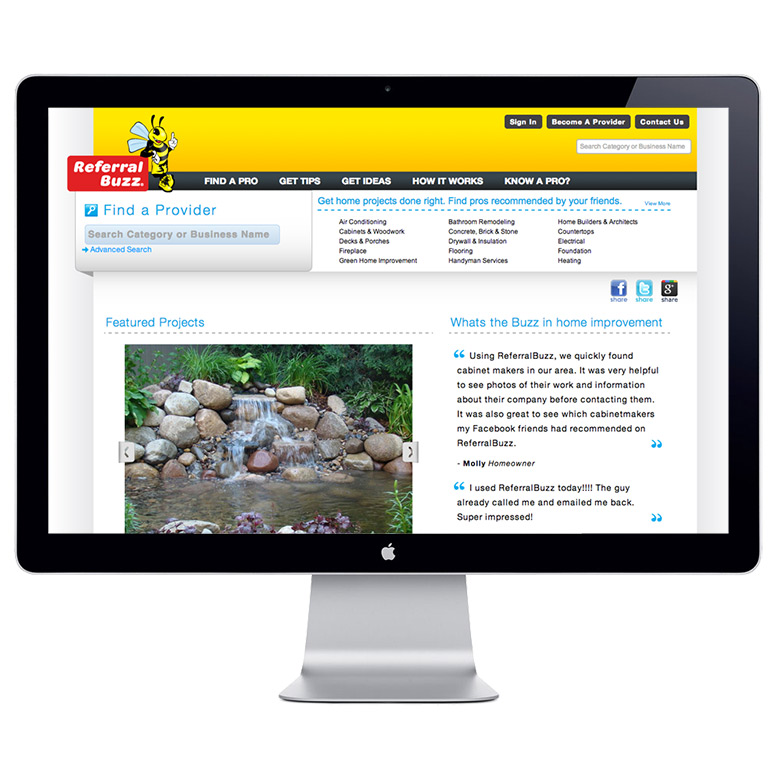 ReferralBuzz is a website used to find local service providers in your area. I was brought on to create an identity system, design the website and create promotional material.